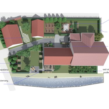 Ogród ma mieć charakter miejsca ze swobodnie rosnącymi roślinami o różnej fakturze, w odcieniach zieleni, ale z dodatkiem bordowych, różowych i pomarańczowych akcentów. Ciepły, przytulny, trochę dziki, podzielony na wnętrza o określonych funkcjach.